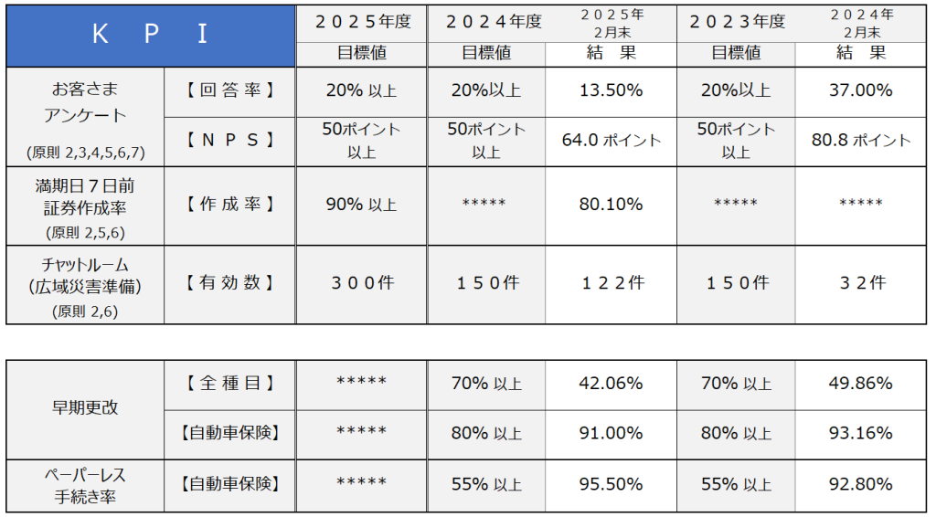 当社が定める「顧客本位の業務運営」の定着状況を評価するための指標(KPI)は以下の通りです